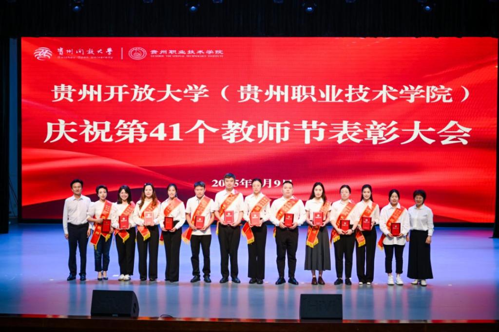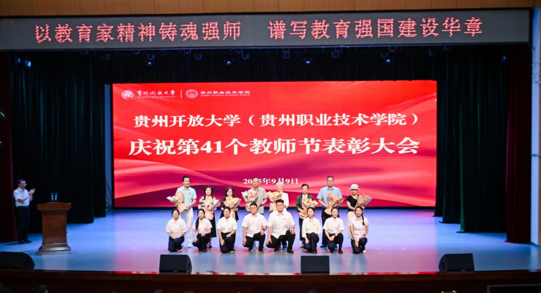 党委书记令狐彩桃同志在总结讲话中代表学校向辛勤工作的全体教职员工致以节日的问候,向受表彰先进个人表示热烈祝贺,并向在2025年世界职业院校技能大赛总决赛中斩获三金四银一铜的师生团队予以鼓励。她从教育家精神的深刻内涵出发,围绕“以教育家精神铸魂强师”主题,从要胸怀“国之大者”践行“教育初心”;要打造“精神高地”书写“奋进之笔”;要涵养“人才生态”共创“美好未来”三个方面明确教师使命和学校师资队伍建设方向。最后,她期望每一位教职员工都在贵州开大(贵州职院)这片沃土上,用爱与智慧为广大学子播下希望的种子,在平凡中书写伟大,携手共筑学校美好未来!